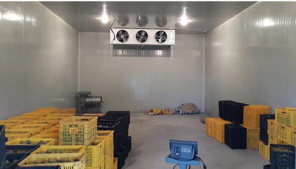 2、1號(hào)水果恒溫庫(kù)和2號(hào)水果恒溫庫(kù)制冷系統(tǒng)分別配備的是一套8HP和5HP美國(guó)艾默生谷輪中溫渦旋壓縮機(jī)組(含冷凝器、電磁閥、壓力控制器等),該機(jī)組制冷量大,性價(jià)比高,安全可靠。兩間冷庫(kù)內(nèi)各配備了一套浙江凱迪系列高效強(qiáng)風(fēng)型冷風(fēng)機(jī),該風(fēng)機(jī)運(yùn)行穩(wěn)定噪音小,送風(fēng)距離遠(yuǎn),使得庫(kù)內(nèi)降溫速度快,極大增強(qiáng)了化霜效果,增加快速對(duì)流循環(huán),從而達(dá)到每個(gè)角落的溫度均勻性。